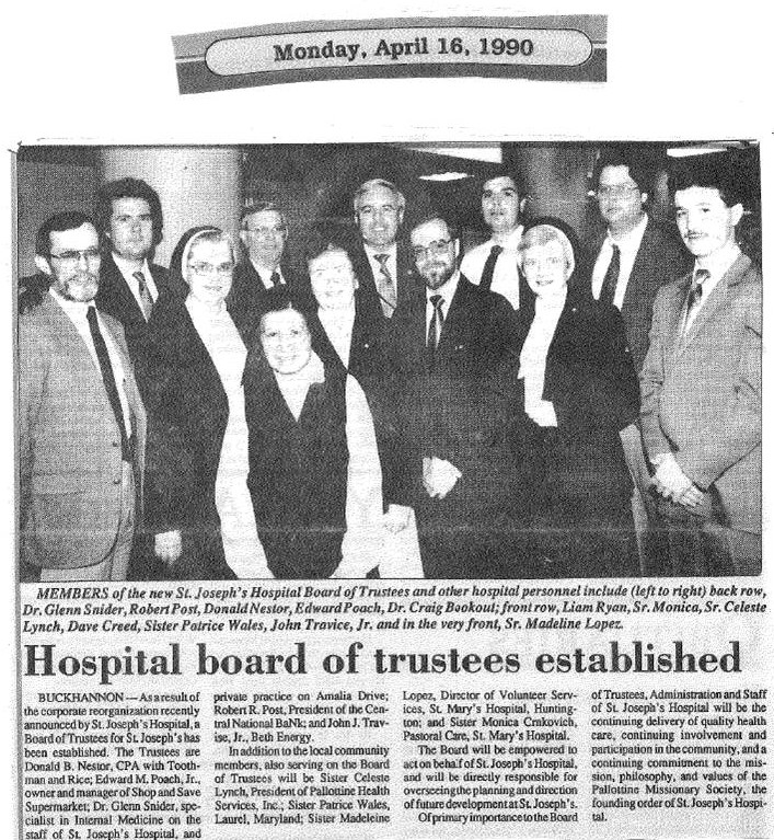 In the fall of 2015, the Pallottine Missionary Sisters transferred sponsorship of the Hospital to United Hospital Center and WVU Medicine. By joining forces with WVU Medicine, St. Joseph’s Hospital has ensured its long-term viability for the community.
