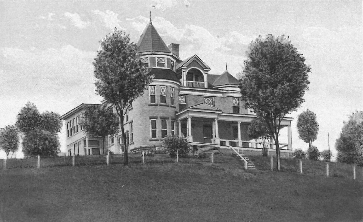 In the early 1900’s, Charles and Mary Barlow built their new home near the Buckhannon city limits. It was called “The Overlook” since it looked over the entire town and countryside. It was a four-story wooden building faced with yellow brick on nine acres of land.