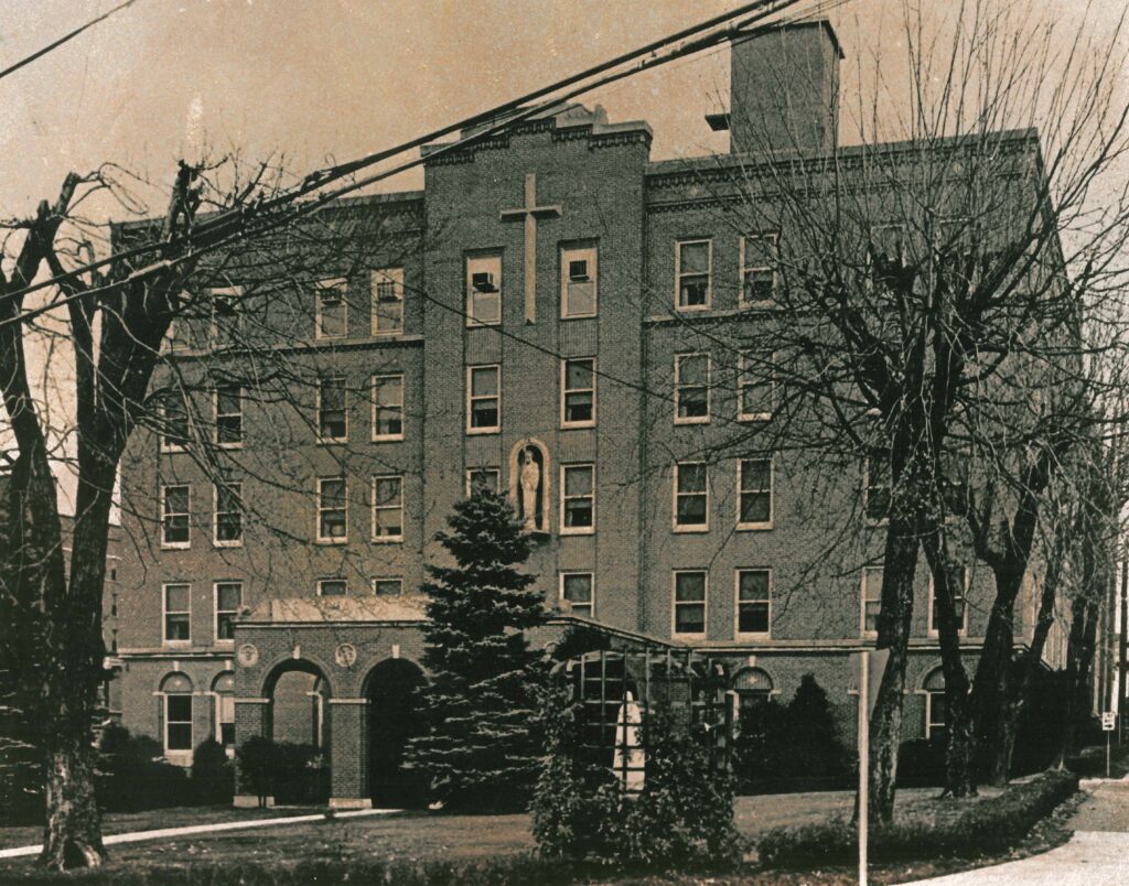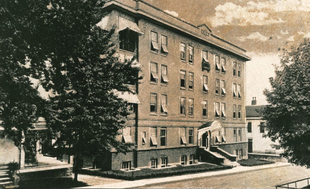 The St. Mary’s Hospital School of Nursing was chartered in 1905 and was maintained until 1968. In 1948, DeSales hall, a modern six-story brick building, was constructed on Main Street adjacent to the hospital to provide housing and educational facilities for one hundred student nurses. It was named in memory of Sister Mary de Sales Coraty, who had served as administrator of St. Mary’s Hospital for 22 years.